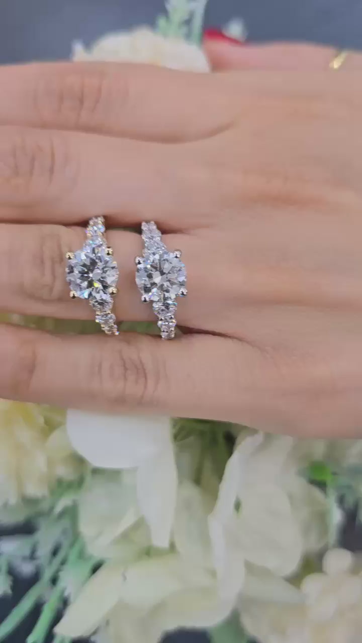 IGI Certified 3.00 Carat E/VS Lab Grown Round with Side Diamond Engagement Ring For Women