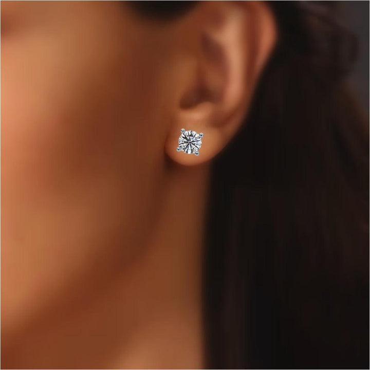1.00 Carat D/VVS Round Diamond Push Back Stud Earring In 9K Gold